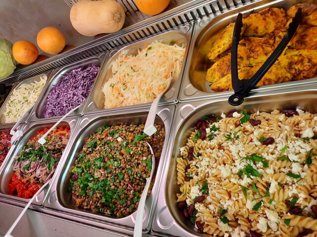 Wir bereiten unsere leckeren Salate täglich frisch für Sie zu. Alle Salate können Sie nach eigenem Wunsch zusammenstellen und mit warmen Beilagen kombinieren.